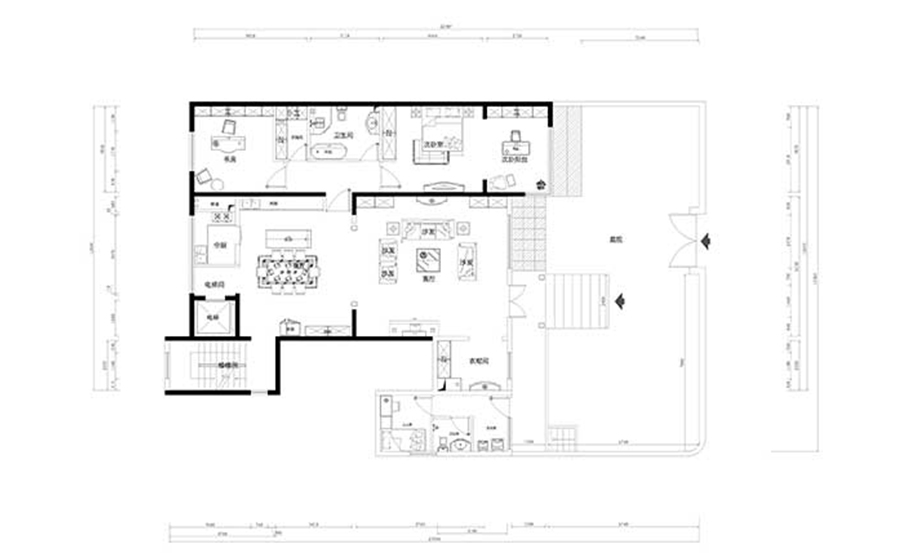 通過與業(yè)主溝通,了解家庭成員夫妻和兒子居住和使用需求,結(jié)合房屋本身的結(jié)構(gòu)特點,入戶門正對客廳,客廳私密性不好,門廳要大滿足主人實用功能,還要體現(xiàn)玄關(guān)功能.客廳與餐廳空間沒有有效劃分,另外廚房中西廚的處理要考慮實用性和裝飾性。"門廳做了整體衣帽柜,滿足實用功能,拆除部分隔墻,增大了客廳及門廳間的通道,使整個空間更加開闊。造型啞口的設(shè)計,