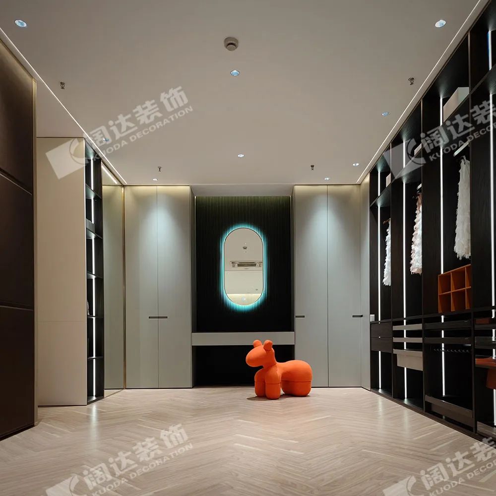 衣帽間的空間設(shè)計(jì)采用了更多年輕的元素,打造出甜而不膩的清新格調(diào)。