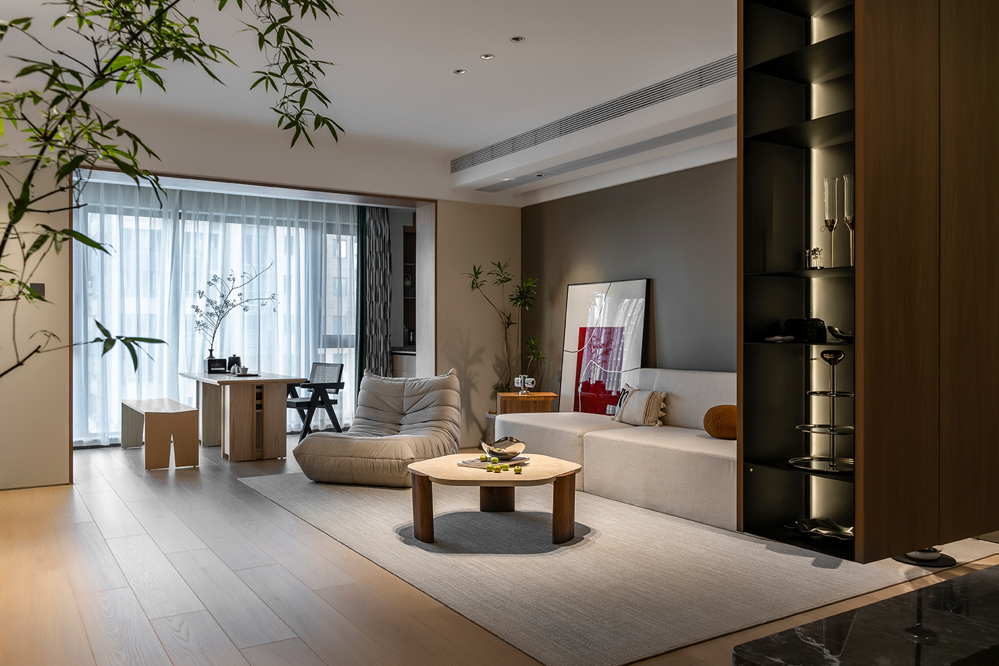 整體硬裝木飾面材質(zhì)統(tǒng)一,在軟裝上配合時(shí)尚的家具單品,體現(xiàn)悠然自得的生活境界,從而達(dá)到業(yè)主最初向往的世外桃源。