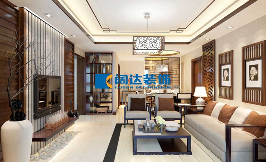 此戶型為三室兩廳的格局,本案運用了新中式風格體現了中國文化的優雅和寧靜,使房屋的主人在一天的忙碌后可以充分享受安逸舒適的休閑時光,在溫暖的陽光下品味著家的溫馨。客廳:本案對客戶沒有拆改變動,充分體現出來新中式設計元素,頂面的中式實木線條的裝飾和電視墻相互呼應,彰顯了新中式的雅致和大氣,地面用了溫馨色彩的微晶石地磚,是整個客戶有了延伸感。