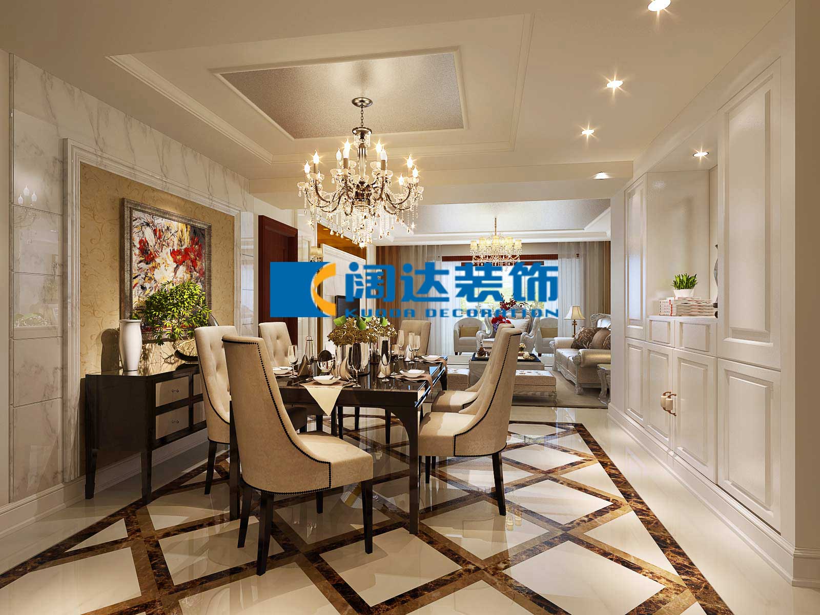 本案例采用歐式設(shè)計(jì)風(fēng)格,通過整體色彩及家具的搭配營造自然、舒適、高雅的生活氛圍,此設(shè)計(jì)案例也在相當(dāng)程度上表現(xiàn)出其居住者的品位、愛好和生活價(jià)值觀。